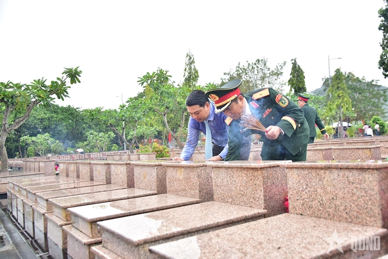 Offering flowers and incense at Doc Ba Dac War Cemetery in An Giang province |