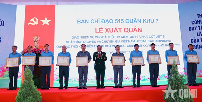 On this occasion, the Military Region 7 Command presented certificates of merit to teams with excellent fulfilment of missions during the 2024-2025 dry season. National Steering Committee 515, Steering Committee 515 of MR7, Tay Ninh and Dong Nai provinces also presented gifts to encourage the team members and Cambodian units cooperating in the joint search operations.