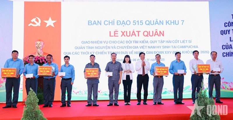 PANO - On November 6, at Hill 82 War Cemetery in Tay Ninh province, the Steering Committee 515 of Military Region 7 (MR7) held a see-off ceremony for its search and collection teams tasked with searching for and repatriating remains of Vietnamese volunteer soldiers and advisors who sacrificed their lives during wartime in Cambodia.