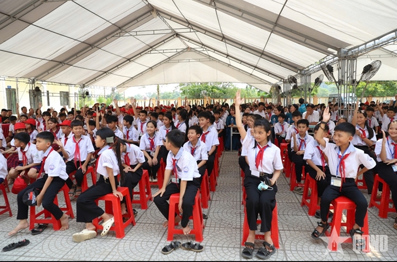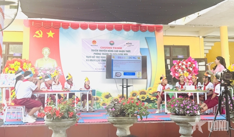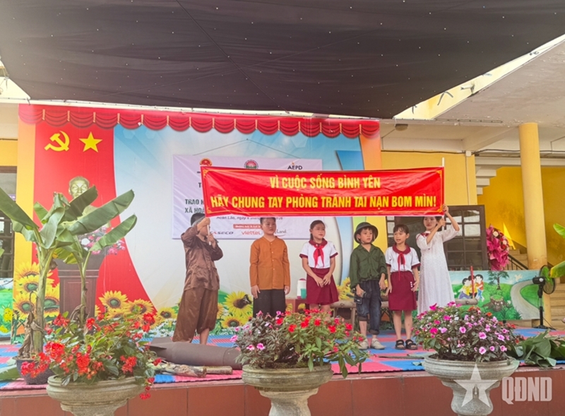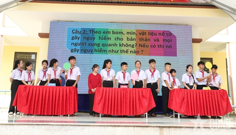 During the program, students from Lien Trach Secondary School of Bac Trach commune and Hoa Trach Primary School of Hoan Lao commune performed various activities to raise awareness of landmine/UXO.