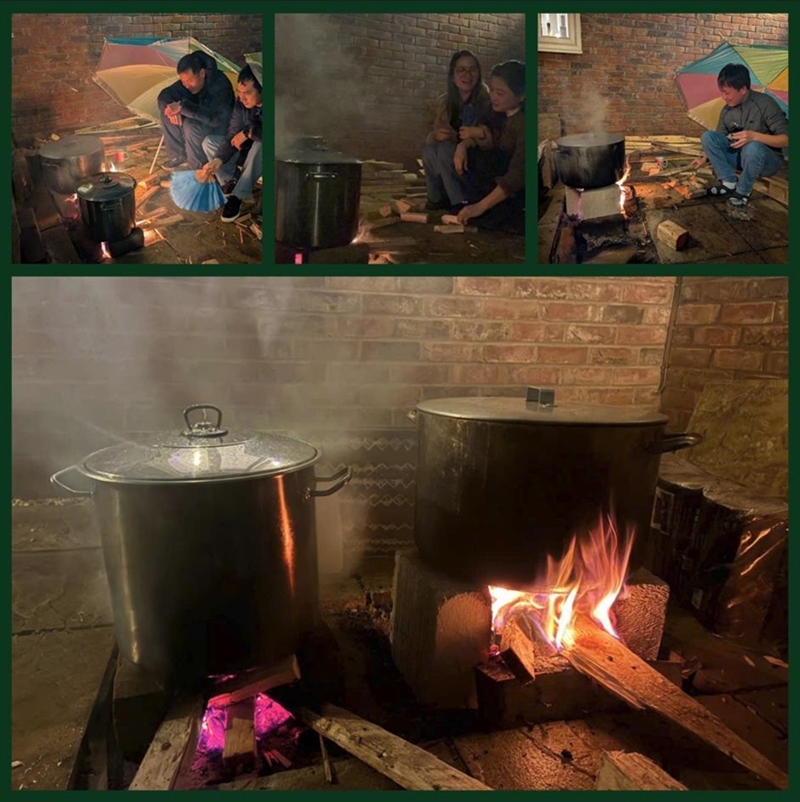 “Unlike in Vietnam, not every house here has enough space to make and boil banh chung,” Khanh explained. After discussion, five small families agreed to gather at the house of Bui Nguyen Hoang and Bui Thanh Khoi Nguyen in Taunton. Their house, with a spacious yard, proved ideal for setting up a wood fire to boil the cakes.