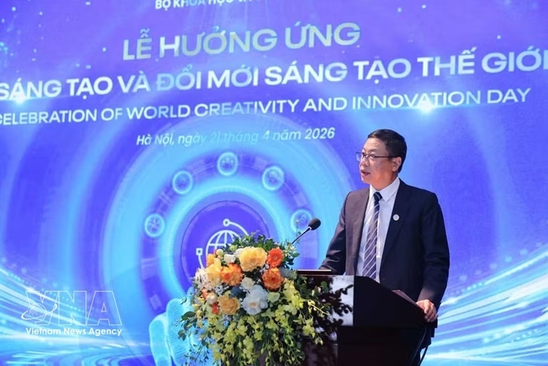 Deputy Minister of Science and Technology Le Xuan Dinh delivers opening remarks at the launching ceremony of the Scientific Innovation Competition 2026 on April 21. |