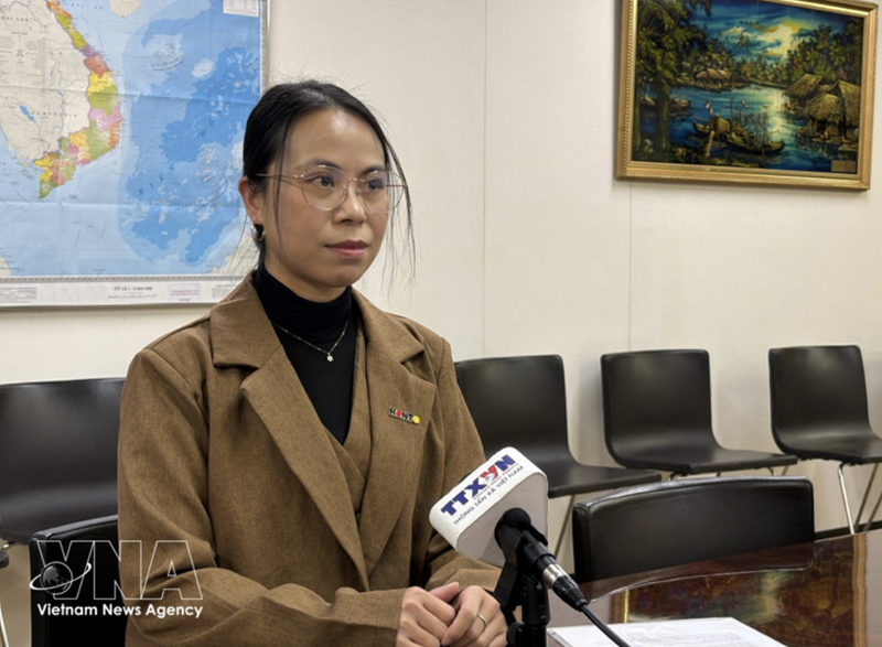 Do Thi Minh Phuong, secretary-general of the union of Vietnamese associations in Japan, in an interview with Vietnam News Agency correspondents in Tokyo |