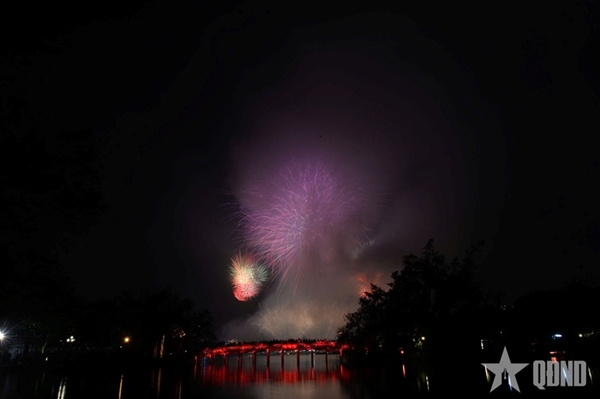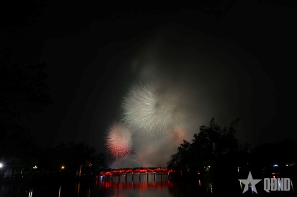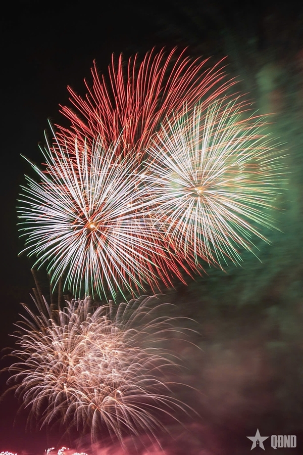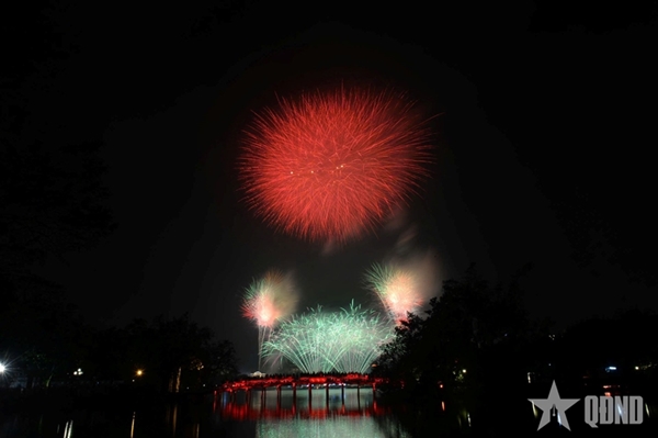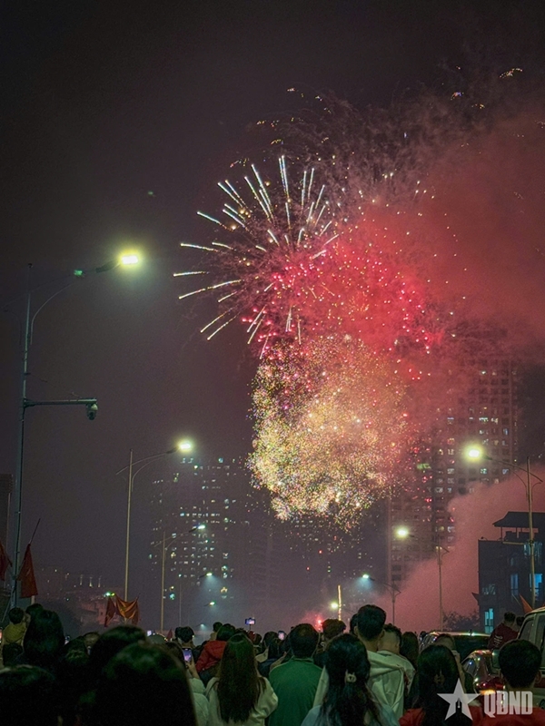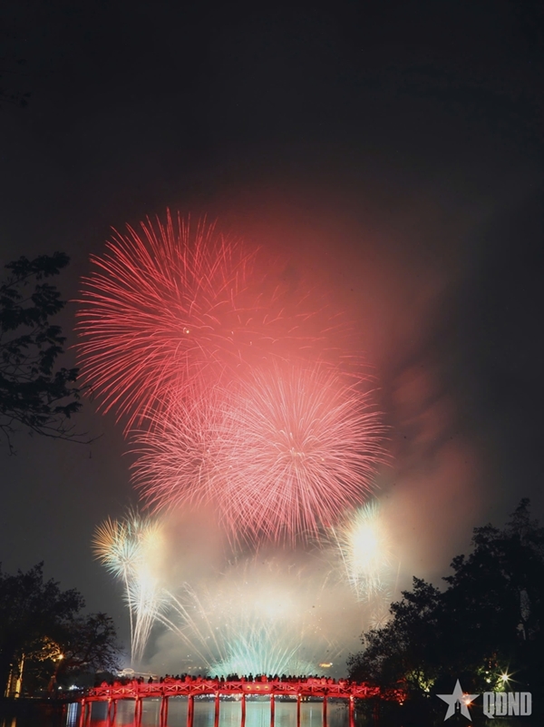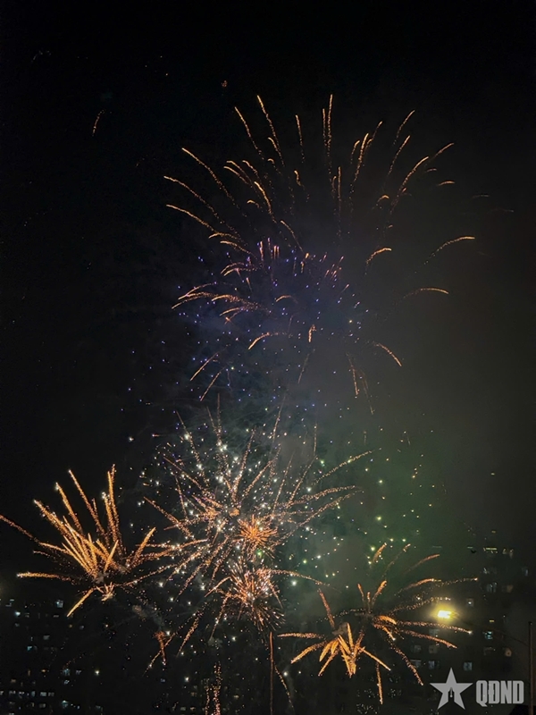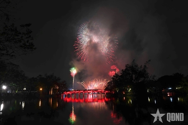 At the fireworks display site around Hoan Kiem Lake, a rapid succession of explosions echoed across the night sky. Brilliant bursts in a wide array of shapes and colors lit up the air, drawing cheers and admiration from the sea of spectators below. The dazzling spectacle reflected on the lake’s surface, creating a shimmering panorama at the heart of the capital.