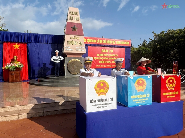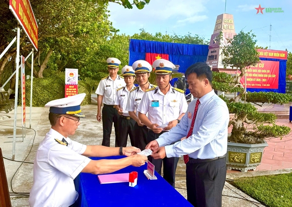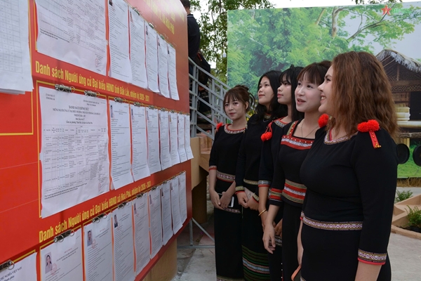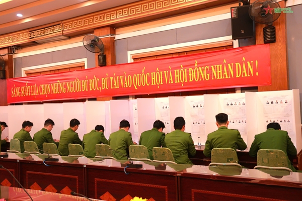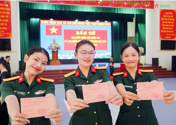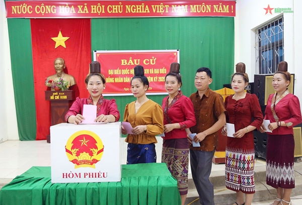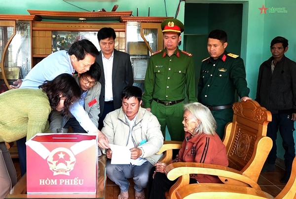 A special voter, former Vice President Nguyen Thi Binh, aged 99. She has voted in every election since the first one and shared that voting is an important political duty in building the authorities at all levels, as well as the responsibility, obligation, and right of every citizen. She cast her ballot at Polling Station No.32, Hai Ba Trung ward (Hanoi).