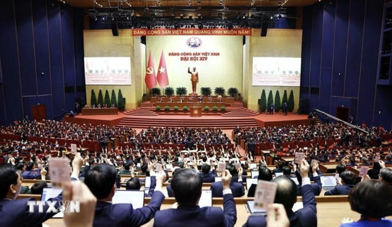 Delegates vote to adopt the resolution of the 14th National Congress of the Communist Party of Vietnam. |