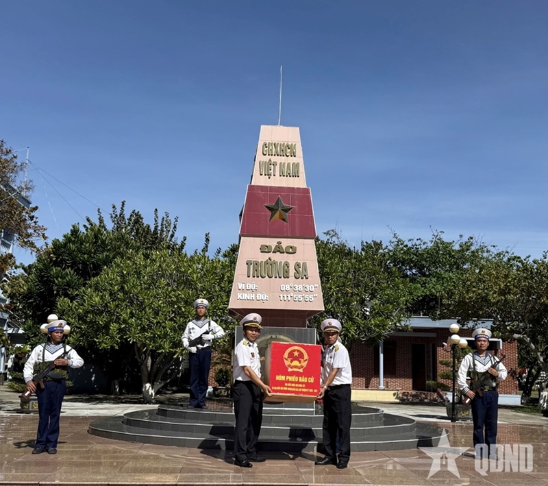 Handover of inspected ballot box to the polling station on Truong Sa Island |