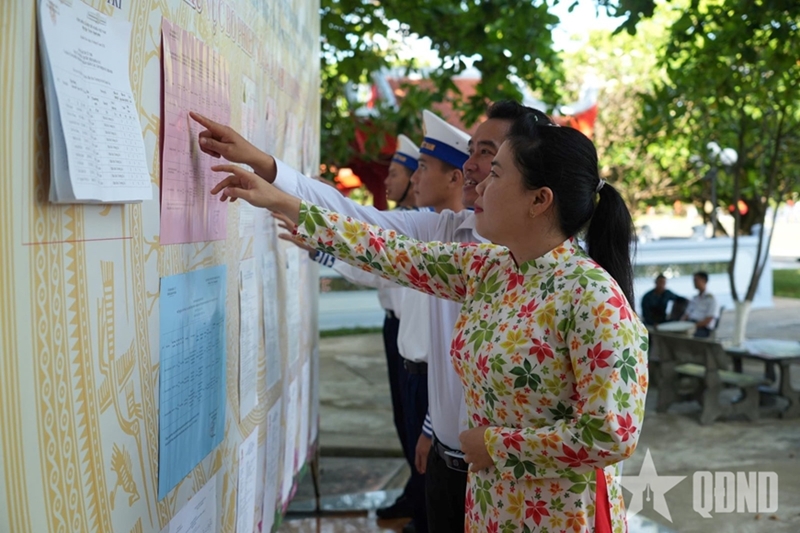 Voters on Truong Sa Island study the brief biographies of the candidates. |