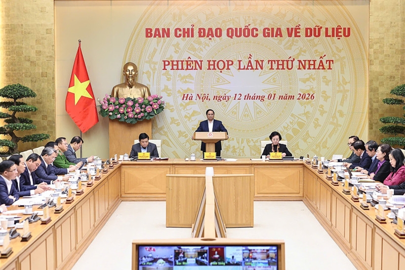 Prime Minister Pham Minh Chinh chairs the first meeting of the National Steering Committee on Data on January 12. |