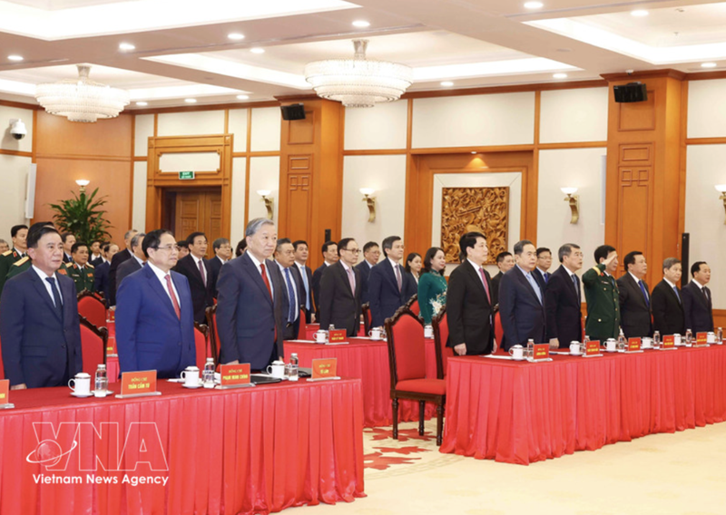 The event, presided over by Party General Secretary To Lam, saw the presence of State President Luong Cuong, Prime Minister Pham Minh Chinh, National Assembly (N.A.) Chairman Tran Thanh Man, Politburo member and Permanent member of the Party Central Committee's Secretariat Tran Cam Tu, alongside incumbent and former Party and State officials.