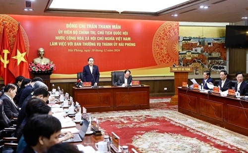 At a working session with the standing board of the local Party Committee on December 18, the top legislator hailed Hai Phong’s efforts to carry out its socio-economic development missions, emphasizing the city’s robust economic performance with an expected growth rate of 11.01% in 2024, domestic revenue estimated at more than 48 trillion VND (over 1.88 billion USD), and sound socio-economic infrastructure.