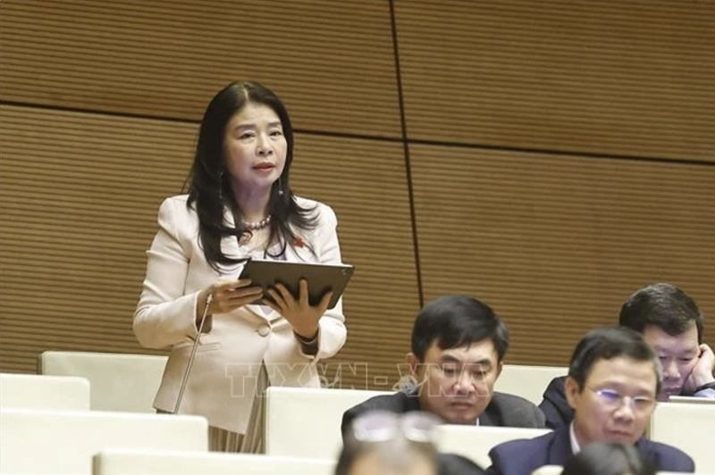 Deputy Le Thu Ha from Lao Cai province speaks at the 10th session of the National Assembly in Hanoi on December 5, 2025. |