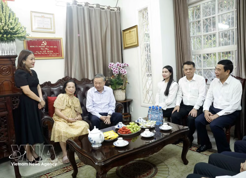 Party General Secretary, State President To Lam and his entourage visit and extend regards to the family of former General Secretary Le Duan. |