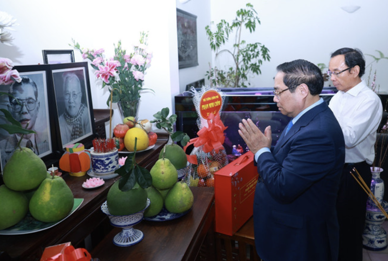 On the occasion, PM Pham Minh Chinh visited the families of late Party General Secretary Nguyen Van Linh, late Chairman of the Council of Ministers Pham Hung, late Prime Ministers Vo Van Kiet and Phan Van Khai, along with other late leaders and officials, and offered incense in their memory.