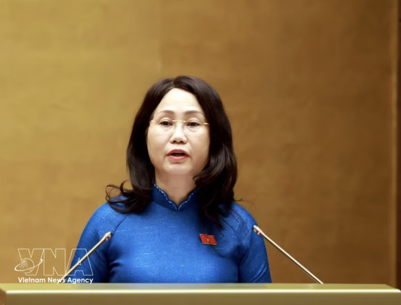 Minister of Culture, Sports and Tourism Lam Thi Phuong Thanh, authorized by the Prime Minister, presents the report explaining, receiving and revising the draft N.A. resolution on the development of Vietnamese culture at the session in Hanoi on April 24, 2026. |