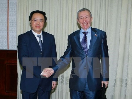 Mr. Hoang Binh Quan receving Senetor Andrey Klimov. Photo: VNA