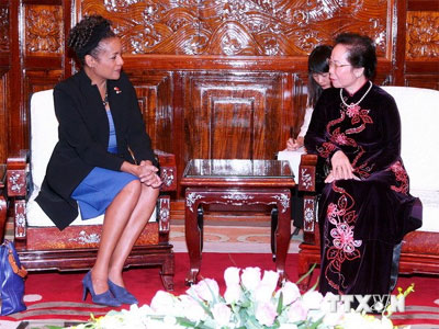 She agreed with Michaëlle Jean’s proposal on linking the University of Ottawa and a Vietnamese university and giving priorities to joint scientific studies and expressed wishes to step up education links with Canada.