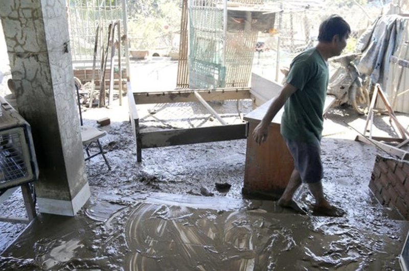 A resident of Ham Thang ward in Lam Dong province cleans up his house following the floods. |