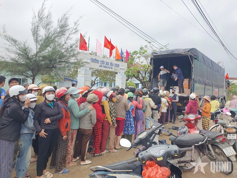 Convoys of relief vehicles hurried into the commune. At the centers of the villages, residents formed lines to receive aid from charitable organizations. According to villagers at hardest-hit villages in Phu Huu, My Xuan 1, My Xuan 2, My Dien, Canh Tinh, Phu Dien, they had never witnessed such a devastating flood. Amid hardships, they were supported wholeheartedly by local authorities and armed forces, as well as by the compassion of people from across the country.