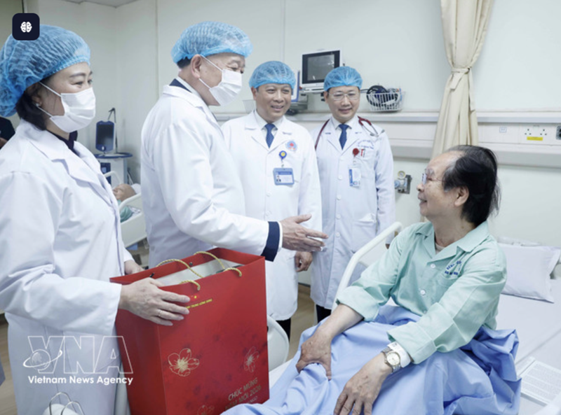 Party General Secretary To Lam visits a patient receiving treatment at Huu Nghi Hospital. |