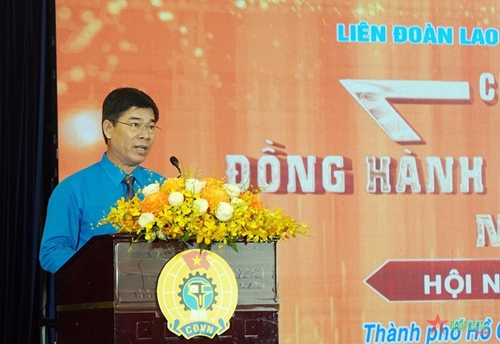 Vice President of the Ho Chi Minh City Labor Federation Pham Chi Tam speaks at the event. |