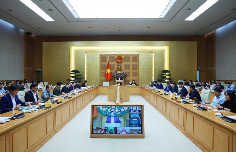 Prime Minister Pham Minh Chinh (center) chairs a hybrid meeting meeting with ministries, central agencies and local authorities on December 17 to review the implementation of the “Quang Trung Campaign” to rebuild and repair houses that are severely damaged by recent storms and floods. |