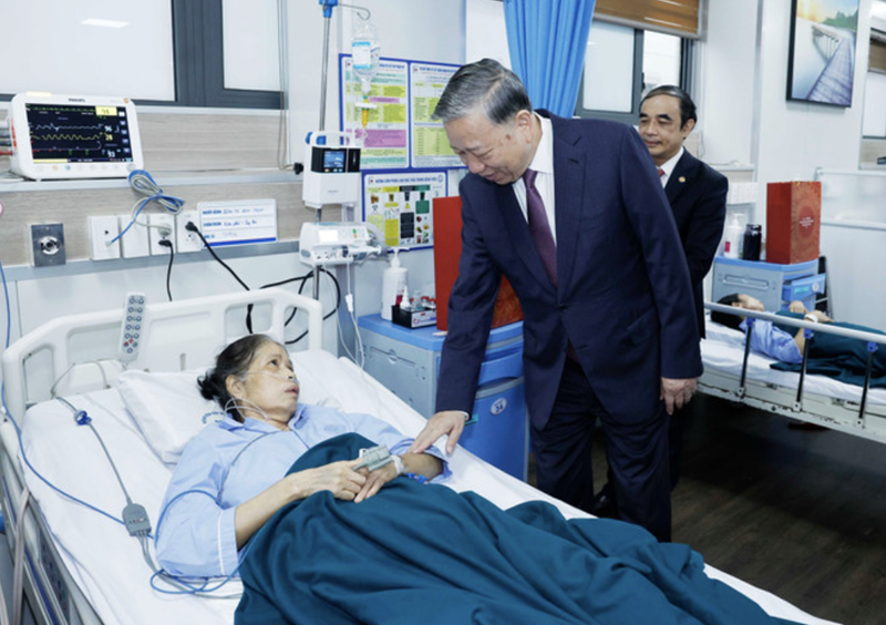 Party General Secretary To Lam visits and presents gifts to patients at the Hanoi Medical University Hospital. |