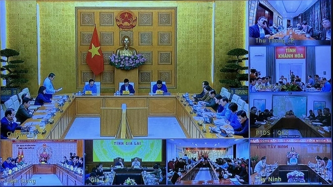 The meeting is connected from South Africa with the Government Headquarters and the provinces of Khanh Hoa, Gia Lai, Dak Lak, Lam Dong and Tay Ninh, and the Civil Defense Command of Military Region 5. |