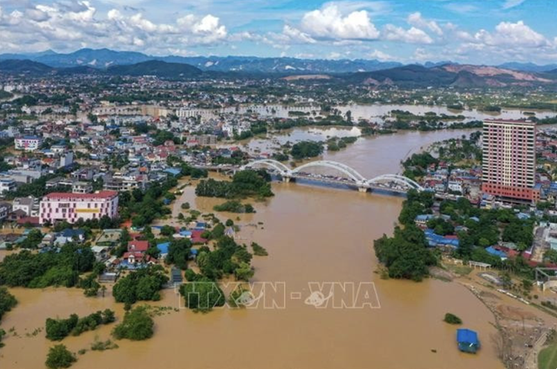 The central area of Thai Nguyen province is deeply submerged in floodwater. |