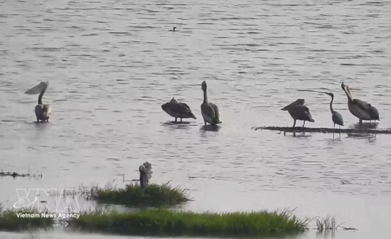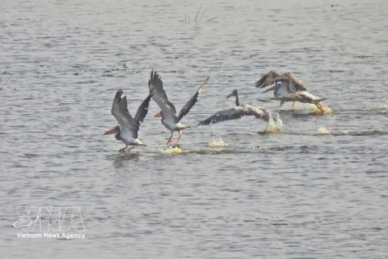 Rare spot-billed pelicans appear at Tram Chim National Park after six years of absence. |