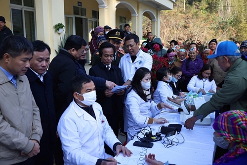 Medical staff from Huu Nghi Hospital check local people’s health. |
