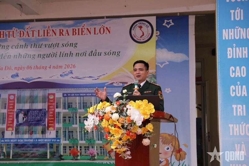 The thematic program is an extracurricular activity aimed at arousing deep pride in national sea and island sovereignty. At the event, Colonel Nguyen Danh Quan (an officer of the Department of Information and Education, General Department of Political Affairs) shared the latest updates on Truong Sa following his working trip in January 2026.
