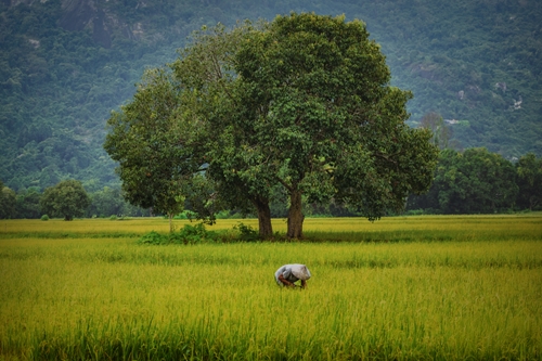 PANO - Ta Pa rice fields in Tri Ton district, An Giang province attract visitors during the harvest season in December. This picturesque landscape is considered a long silk thread.