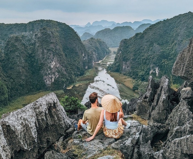 Foreign tourists at the peak of Mua cave in Ninh Binh province. |