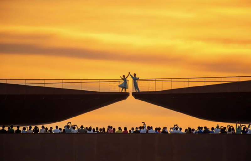 Facing the bay is Kiss Bridge – a structure that international media have called “the bridge of kisses” since its debut, designed by renowned Italian architect Marco Casamonti. Originally conceived simply as a bridge connecting two breakwaters, the project evolved into a unique architectural symbol with two branches stretching toward the sea without touching, evoking the suspended moment before a kiss.