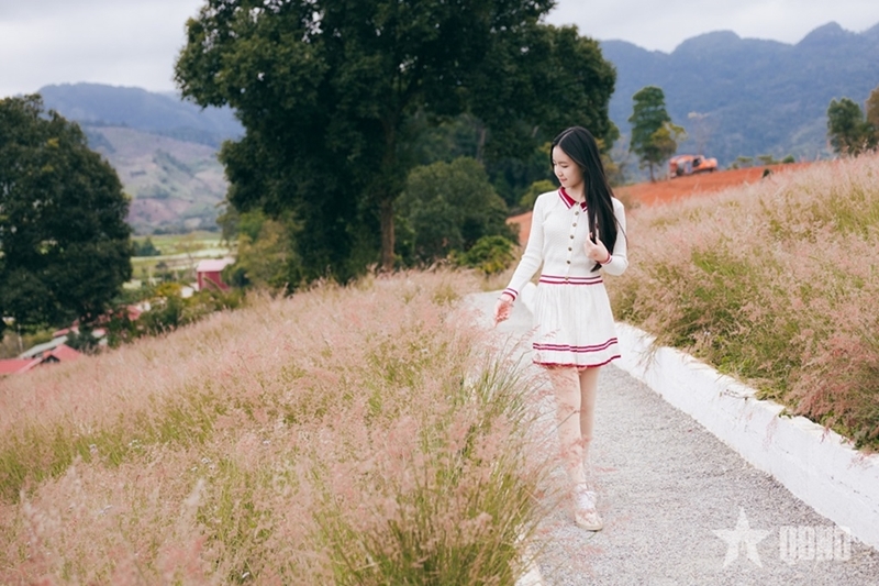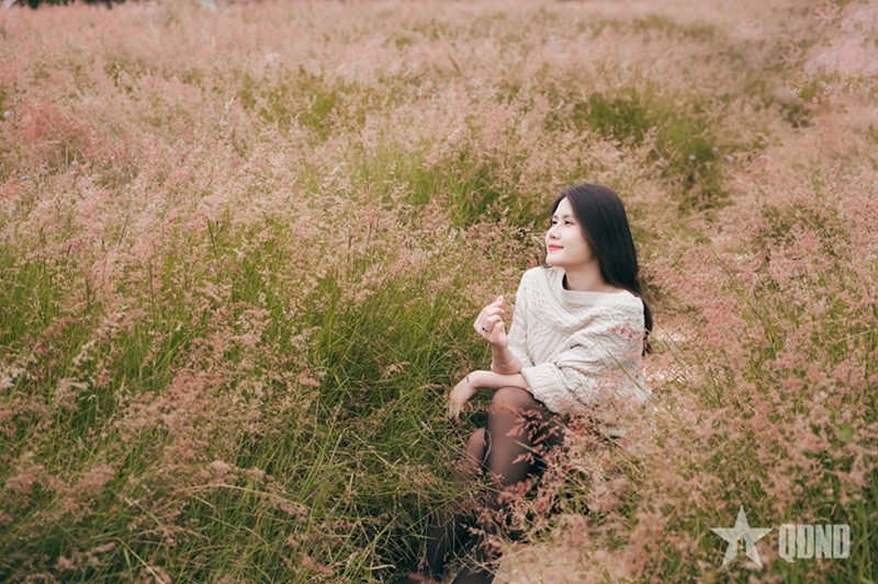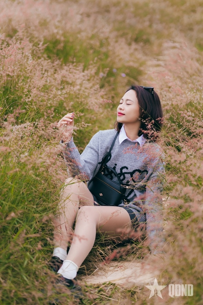 At this time of year, many tourists coming to Moc Chau to seek out the pink grass hill |