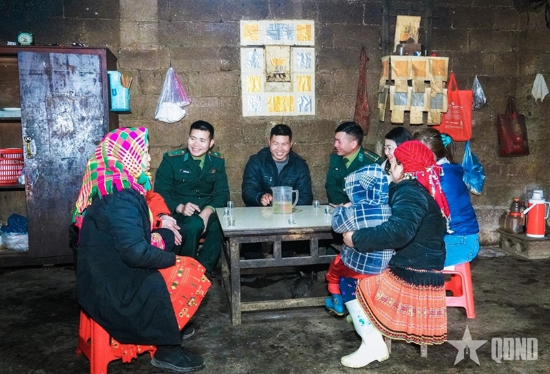 Border guard soldiers gather with local residents, strengthening the close-knit bond between the military and the people along the nation’s frontier. |