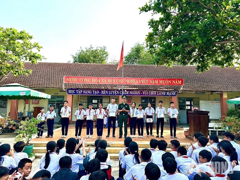 Xuan Dai Border Post presents gifts to disadvantaged students. |